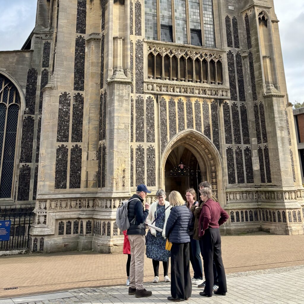 The walk was devised and led by historian Paul Dickson to celebrate the contribution of black people to the history of Norwich and Norfolk. He told Bishop Graham and his office staff about children freed from a slave ship and baptised at St Peter Mancroft Church, 18th century market traders, and the black American servicemen who brought rhythm and blues and soul music to the city in the Second World War.