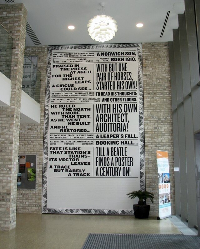 Pictures: Top, Paul Dickson, centre with the Bishop of Norwich, leading Norwich: A Black History walking tour. Above top, Pablo Fanque and the huge modern mural celebrating his life, Evelyn Simak/Creative Commons. Above, the tour starts outside St Peter Mancroft Church and takes in the Norwich Lanes and city people who fought against slavery.