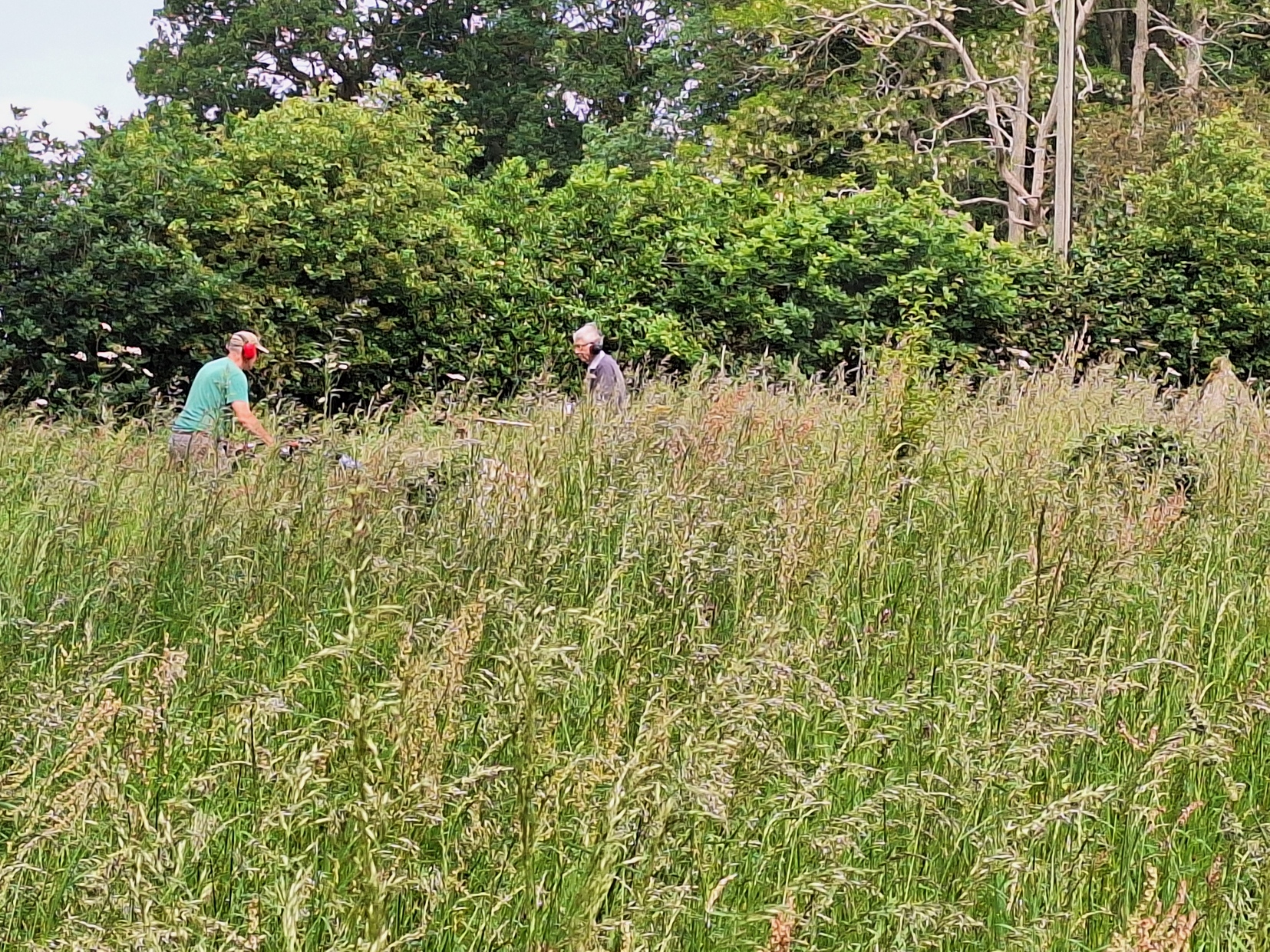 The southern churchyard was cut by BADCOG on Monday morning, 9 June, and although the cut hay in was wet, following the amazing electric storm of the previous night, a small team from BADCOG raked and carted it away on Saturday morning, 14 June. This was filmed in part by members of the Norfolk Wildlife Trust, who are keen to show on their website what the Churchyard Conservation Scheme involves.