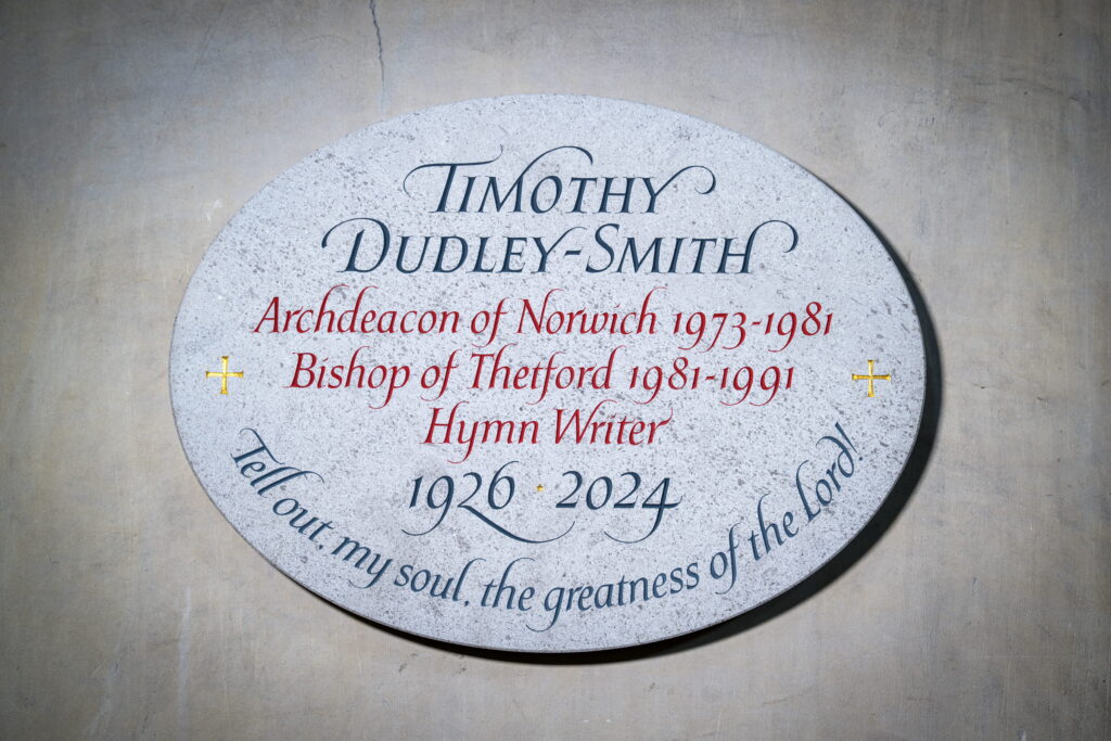 He wrote more than 450 hymns and during Sunday’s service Norwich Cathedral Choir sang one of the most famous Tell out, my soul – as the Bishop of Norwich dedicated a memorial stone to Bishop Timothy in the Cathedral’s North Transept.