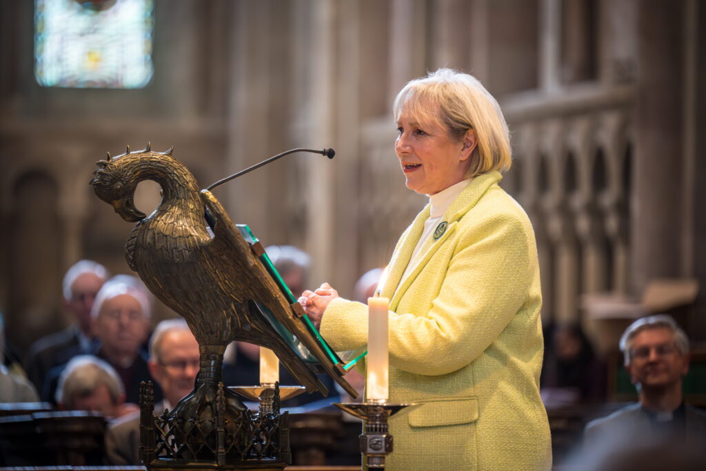 The second lesson was read by Songs of Praise presenter Pam Rhodes who also introduced Bishop Timothy’s hymn Name of all majesty. Another of Bishop Timothy’s hymns, Lord, for the years, was also included in the service.