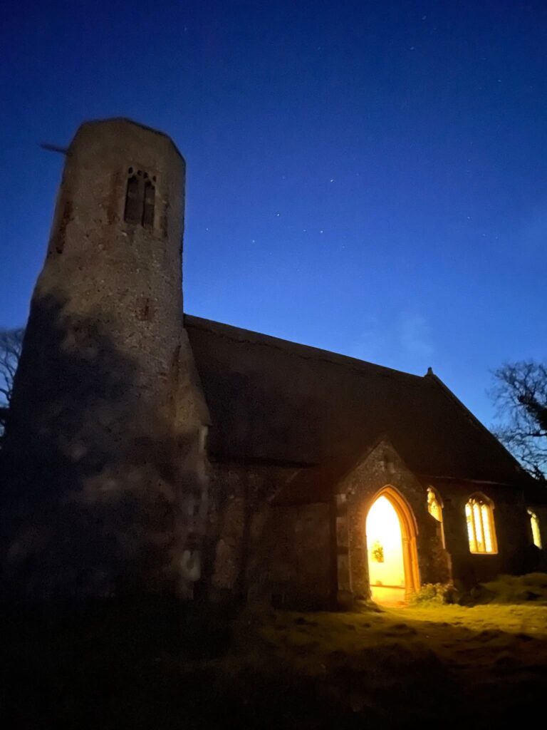 5.45am Easter dawn service at Edingthorpe. As the Body of the Resurrected Lord was elevated at the Consecration so did the sun rise outside!