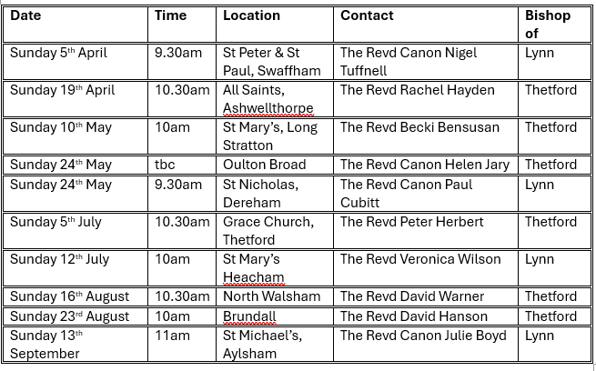 Information about forthcoming confirmation services across the Diocese.