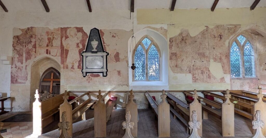 Featured image: The 14th century wall paintings at All Saints’ church, Crostwight. Copyright Fiona Williams 2025.