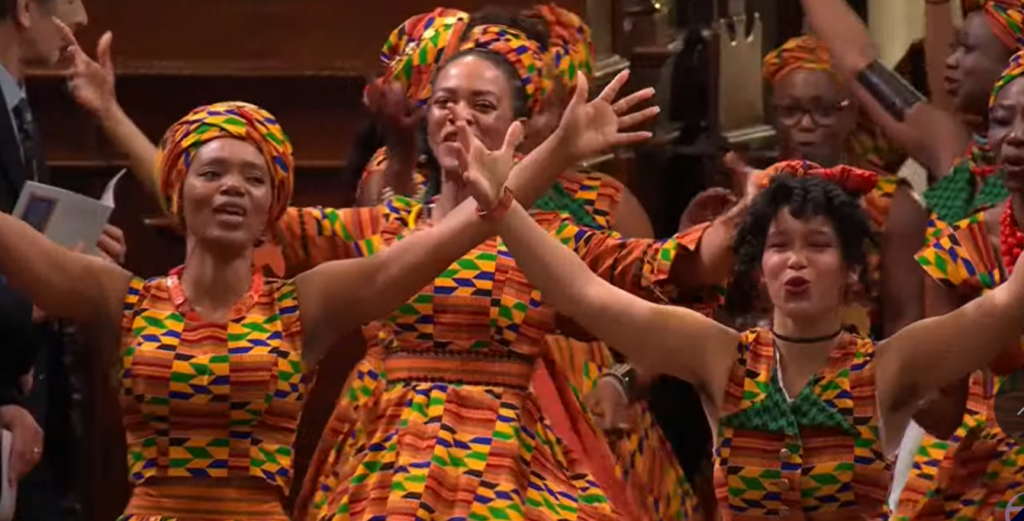 There were several links to Norfolk, including a magnificent contribution from the African Choir of Norfolk before and after the Gospel. The choir was launched by Norfolk’s Anna Mudeka in 2019. She said: “We were all so excited to be invited. We couldn’t believe it!”