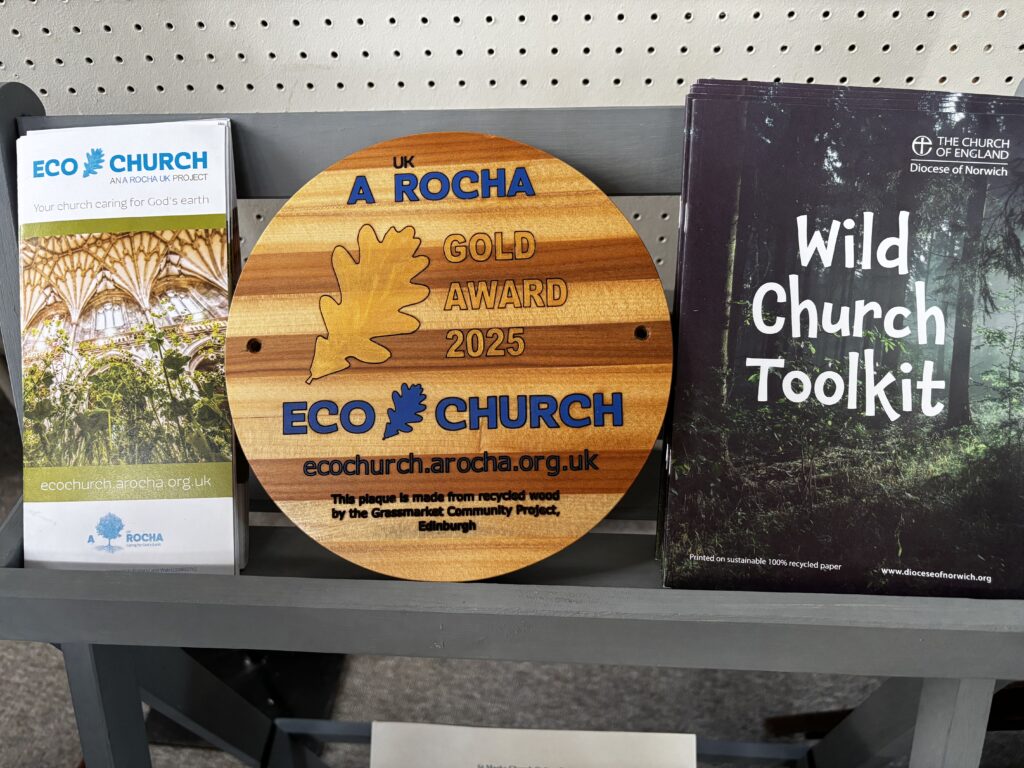 St Mark’s Oulton Broad officially celebrated it’s amazing Eco Church Gold Award by hosting a “Green Day” for the local community, inviting Bishop Graham to speak and to present their Gold Award plaque.