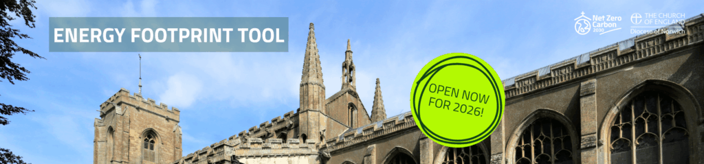 The Energy Footprint Tool for 2026 is now open for churches to enter their energy use from 2025. The deadline for entries is 30 June 2026. The Energy Footprint Tool will however remain open until the end of the year for churches to submit their details. This will then ensure dioceses can apply on their behalf for Net Zero Carbon Programme grants and schemes being launched this year.