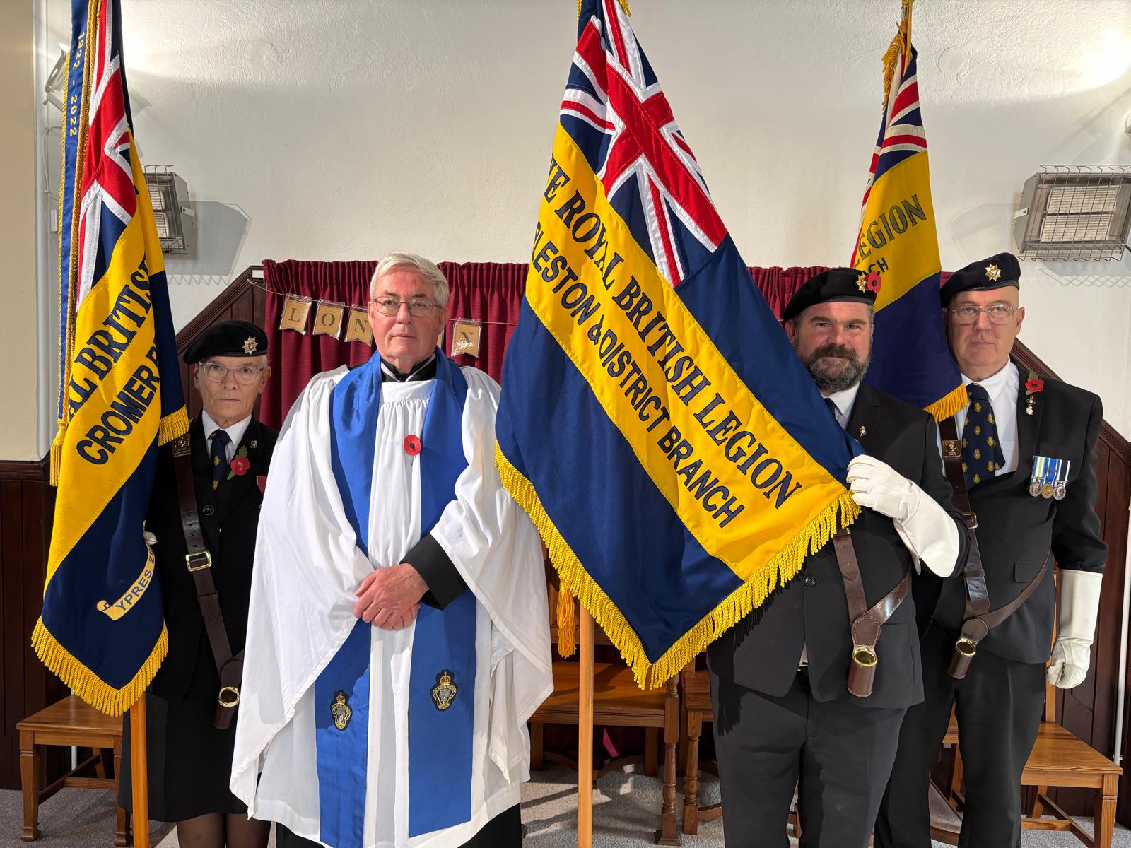 The Harleston Standard was dedicated by Revd Sally Theakston, Chaplain to the Bishop of Norwich on Saturday 1 November 2025. Revd Sally has served in the Diocese of Norwich for over 20 years, having previously been the first woman Anglican chaplain to serve in the Royal Navy. Revd Sally said;