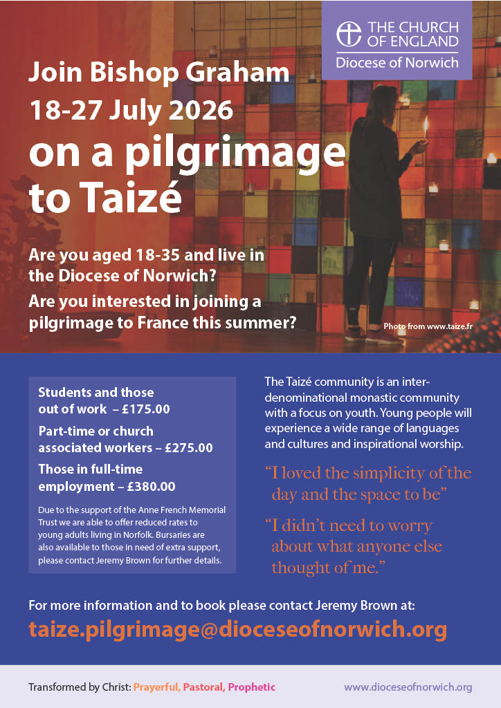 To contact the trip leaders, please email Jerry Brown: taize.pilgrimage@dioceseofnorwich.org