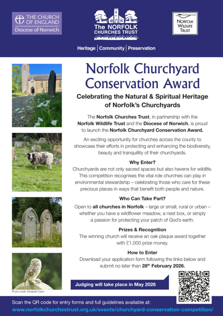 The Norfolk Churches Trust, in partnership with the Diocese of Norwich and Norfolk Wildlife Trust, has launched the Norfolk Churchyard Conservation Award. Celebrating the natural and spiritual heritage of Norfolk’s churchyards.